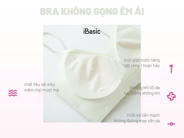 - Áo ngực su không đường may iBasic tàng hình ôm gọn vòng 1, thiết kế không gọng, cuộn tròn không bị biến dạng thoải mái tự tin khi diện đồ ôm sát, tạo nên làn da hoàn hảo dưới mọi lớp áo.