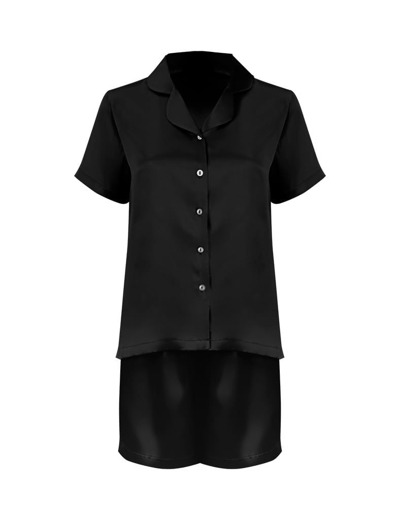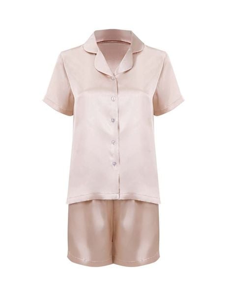 - Đồ bộ mặc nhà nữ lụa satin iBasic với cổ áo pyjama kết hợp cùng quần đùi, mang đến vẻ ngoài trẻ trung và thoải mái.