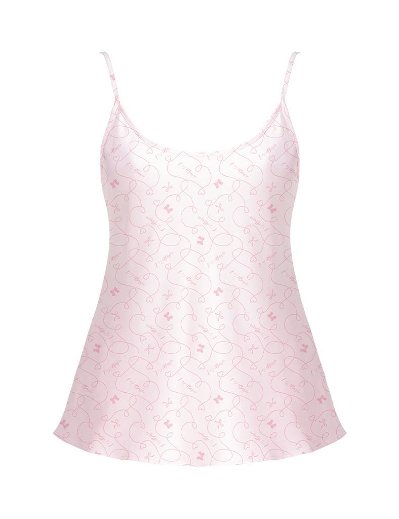 Mặc lên dễ thương, họa tiết tim nhìn trẻ trung. Dây không bị tuột, quần rộng nên ngủ dễ chịu.