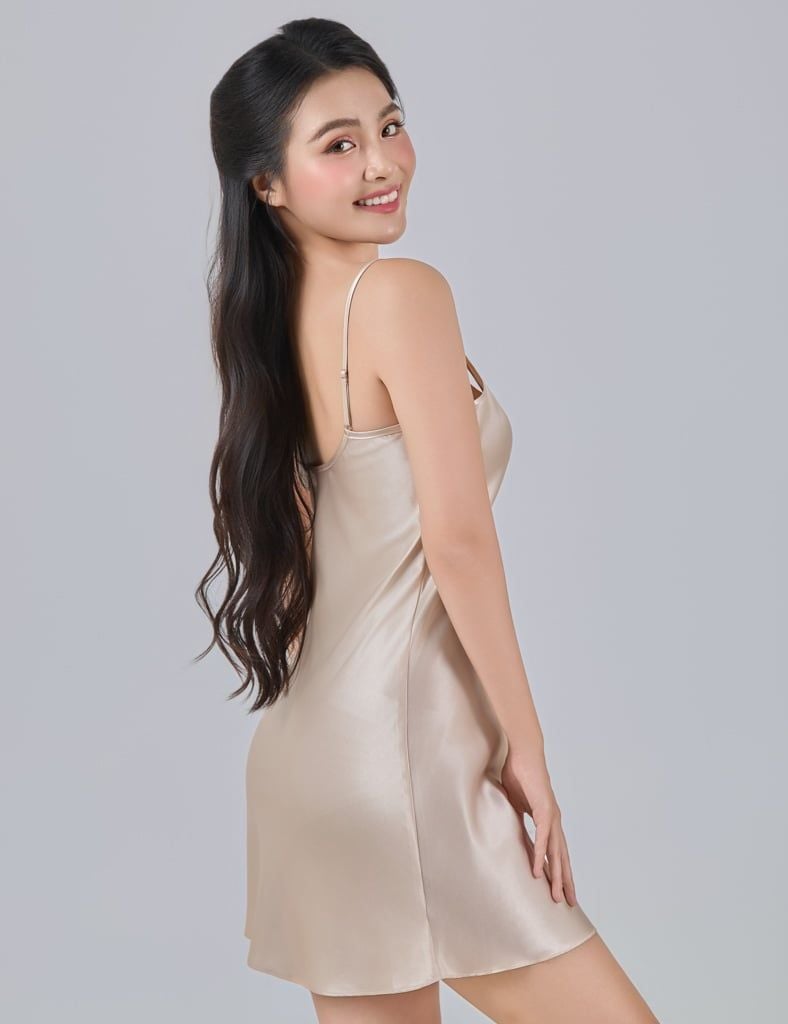 - Đầm mặc trên gối, dây vai có tăng chỉnh linh hoạt