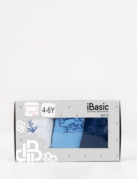 Hộp 3 quần lót bé trai iBasic cotton USA kháng khuẩn phom boxer in hình - PANB027